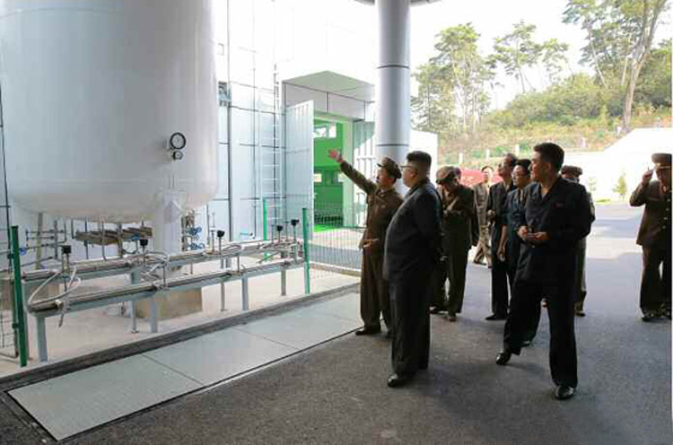 当地时间2016年9月15日,朝鲜,据朝鲜《劳动报》消息,朝鲜最高领导人金正恩在第五次核试验成功后视察新建的医疗制氧机。